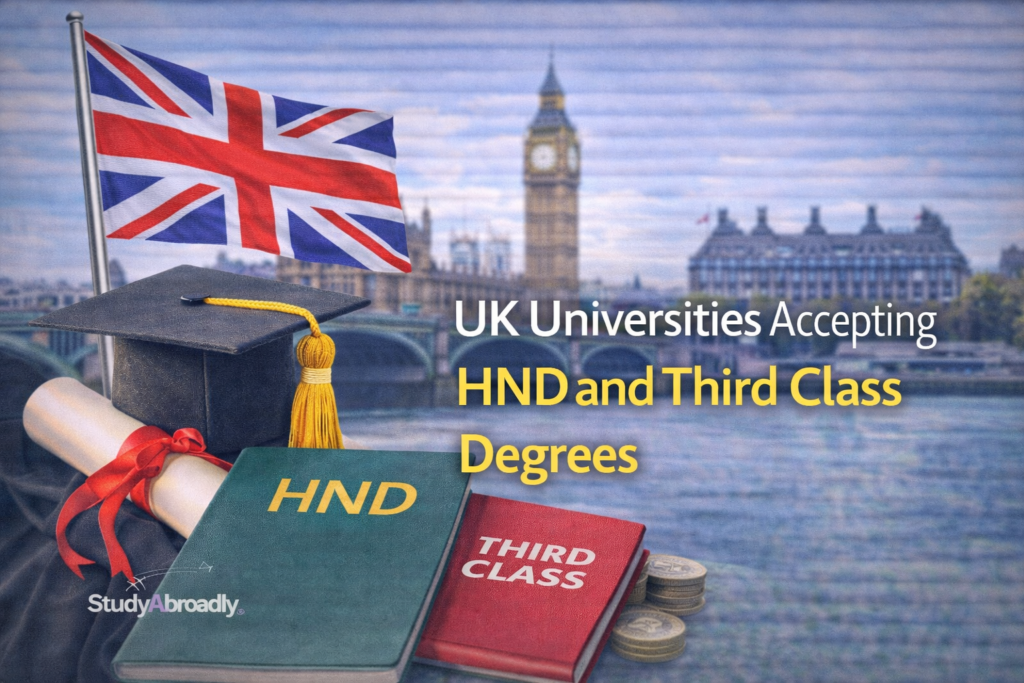 This guide highlights UK universities accepting HND and Third Class qualifications and explains the pathways clearly, so students understand what’s required and what’s possible. For many Nigerian graduates who assumed postgraduate study abroad was out of reach, these options turn a rejected dream into a plan.